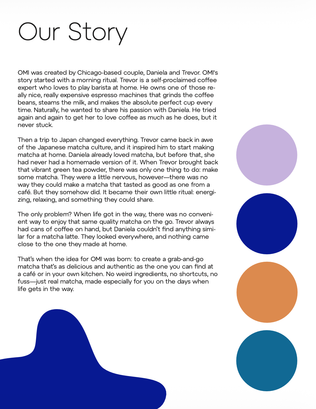 For this project, I created OMI, a Chicago-based ready-to-drink matcha brand built around the idea of “no weird stuff, just real matcha.” Inspired by Japanese matcha culture, the concept focused on making high-quality, café-level matcha accessible on the go. The project included branding, packaging, a social launch strategy, and a social impact plan.